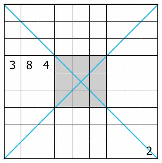 Las dos diagonales principales también deben contener una sola vez los números del 1 al 9.