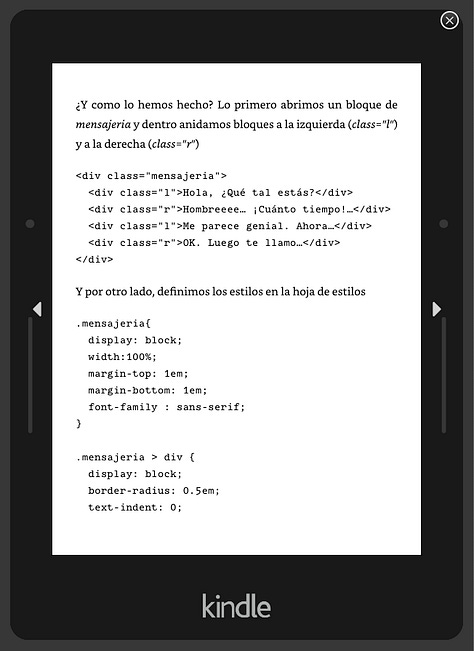 Mi primera aproximación fue un desastre y, aunque en tablets y otros dispositivos funcionaba bien, el kindle lo dejaba cuajado, y es que ya sabemos que es muy especialito con las cosas que puede y no puede hacer.